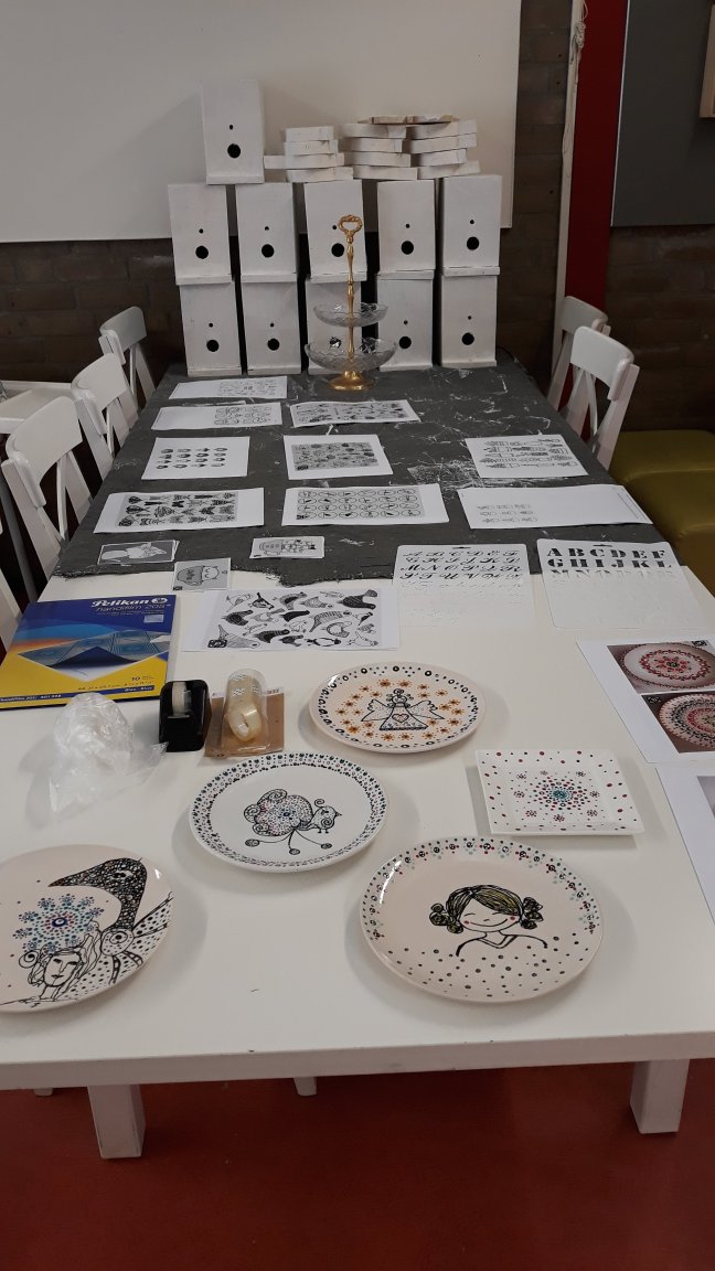 Gisteren de Workshop dotpainting op porselein gegeven.
